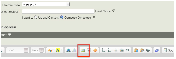 You can include images in your emails using the image button in the text editor. (See the chapter on Set-up for important information about inserting images in Drupal installations.)