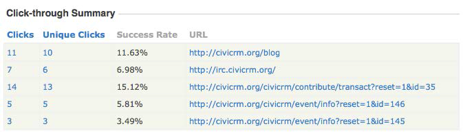 CiviReport has four reports, Bounce, Summary, Clickthroughs and Opens, which offer similar functionality to what is described above. The major advantages of looking at the reports via CiviReport are that: